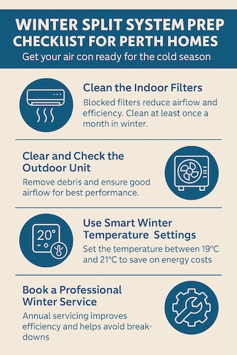 As Perth settles into another cold winter, your split system becomes one of the most relied-on appliances in the home. But if it’s not running efficiently, you could be paying more than you need to stay warm. This winter checklist will help you improve the performance of your split system, reduce running costs, and get the most out of the most energy efficient split system options available in Australia.